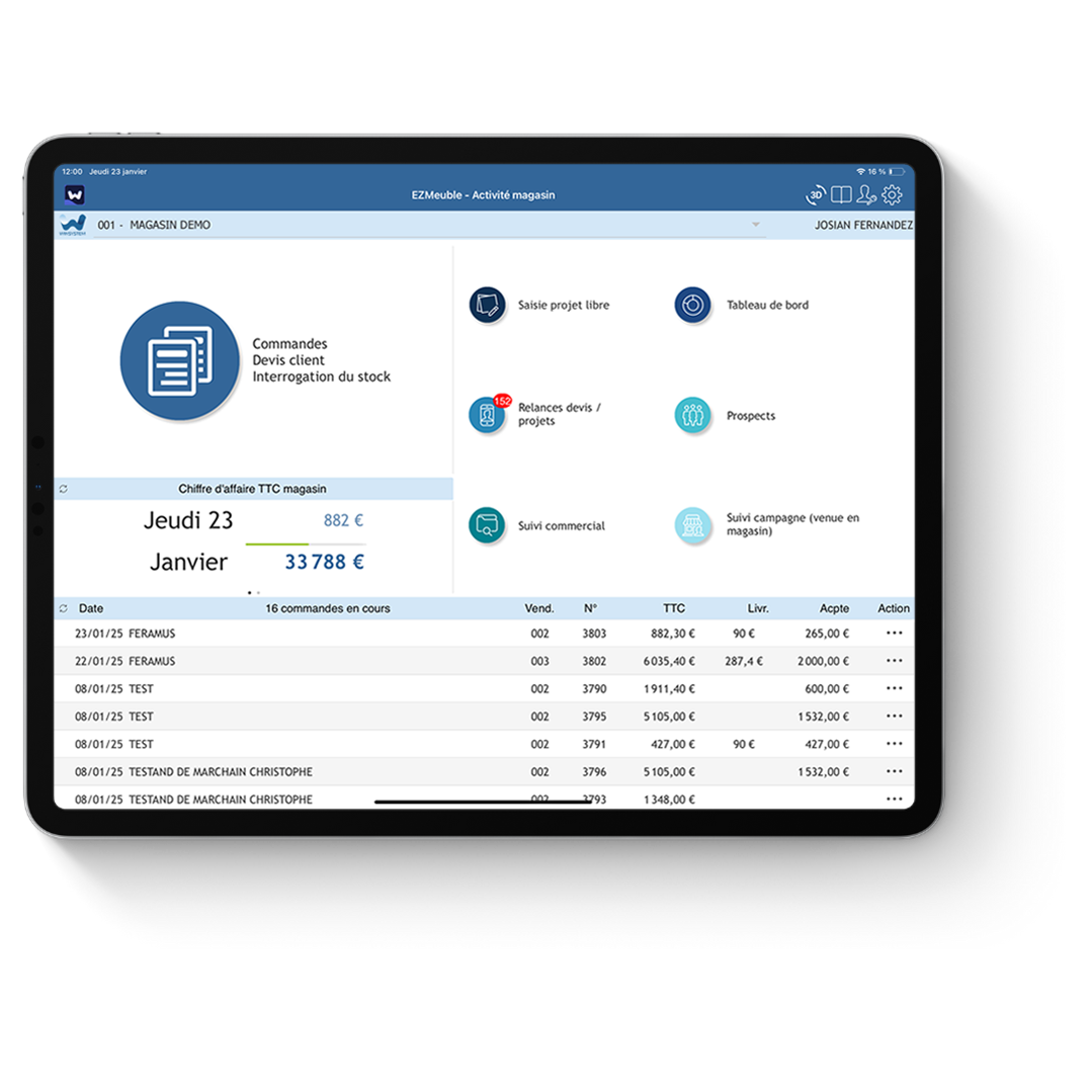 WinCaisse permet au magasin de suivre en temps réel l'avancée de la journée. - Consultation de différentes statistiques. (Familles, vendeurs, heures et réglements)